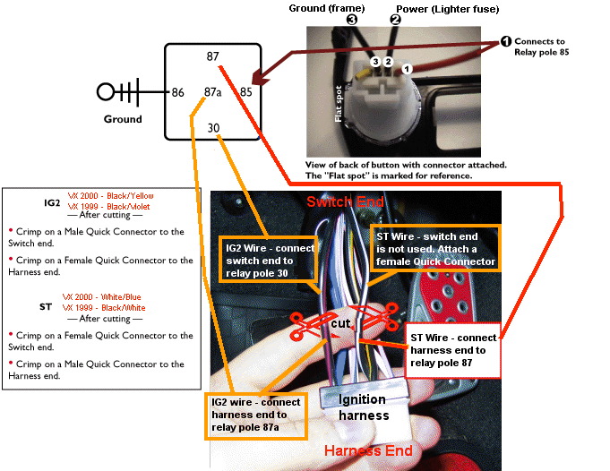 For '99 VXs: ST wire is Black with White stripe. IG2 wire is Black with